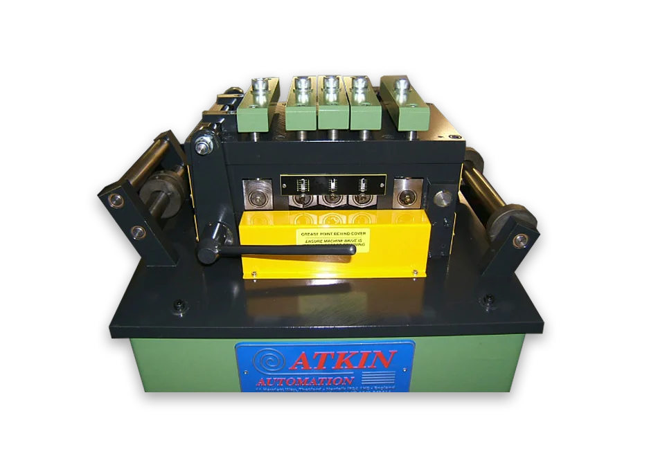 Atkin Automation provides a range of light, medium, and heavy-duty straighteners to remove the ‘set’ in coiled steel strip. The standard strip thickness ranges between 0.3mm and 8mm and the width can go up to 2,000mm.