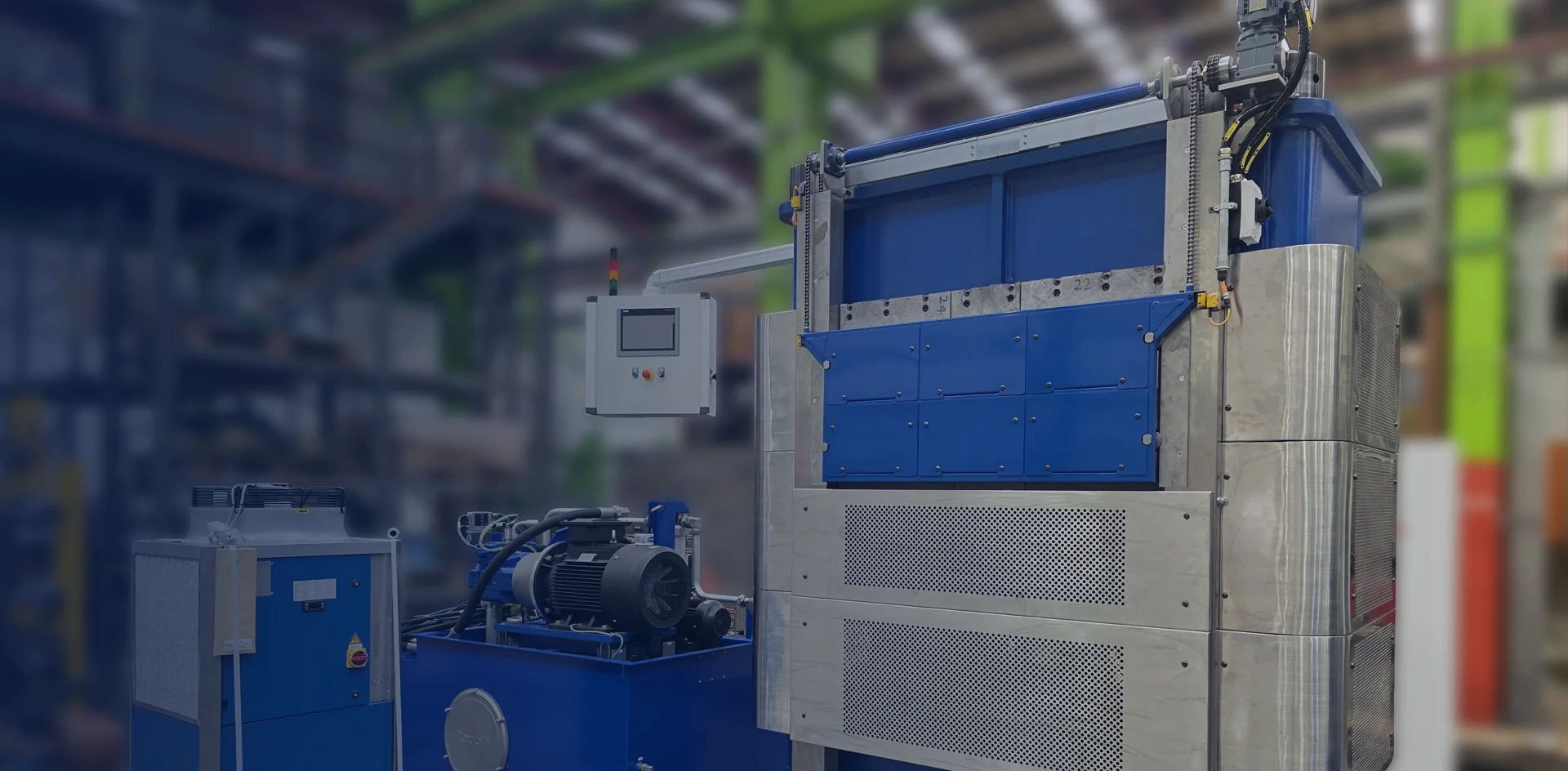 The platens are manufactured from solid steel plate as opposed to fabricated construction, to ensure high resistance to distortion and thermal shock. An Insulation board, with excellent thermal properties, and cooling plate, with serpentine flow path for chilled water, are placed between the platen and press structure to eliminate residual heat transfer.