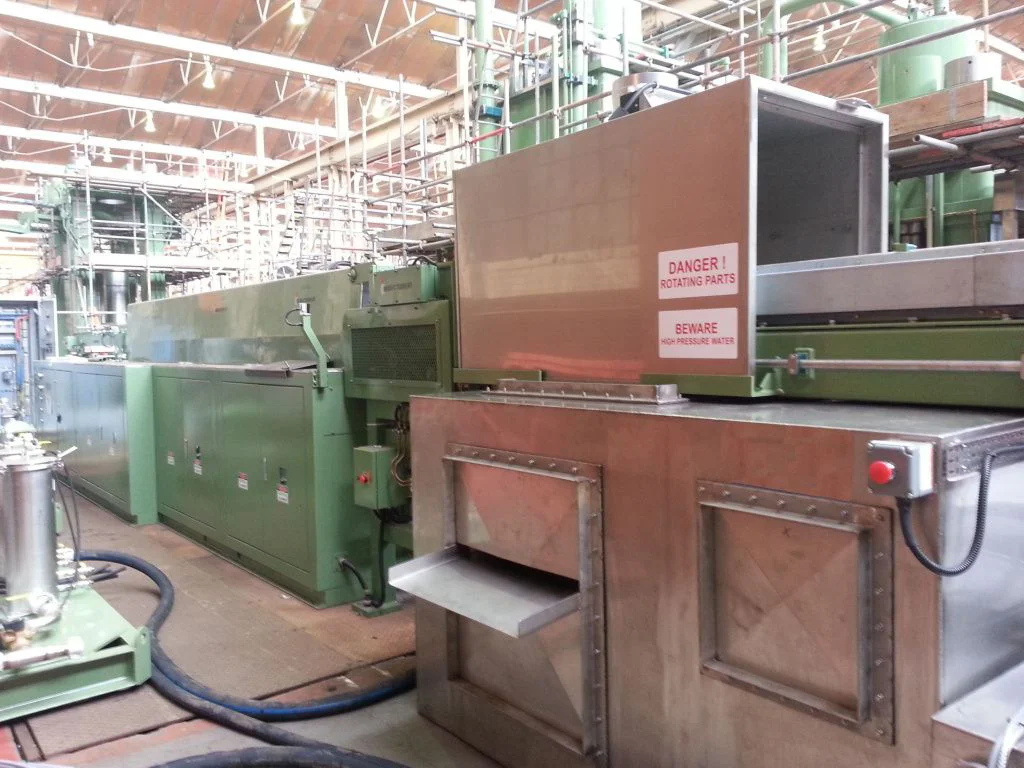 The induction heater offers 2 MW of power to heat the cut-to-length billets to 1,300°C. The induction heater utilises a twin opposed heavy-duty pinch wheel drive system, complete with a rugged gearbox and variable speed drive mechanism, all to achieve a throughput of one component every minute.