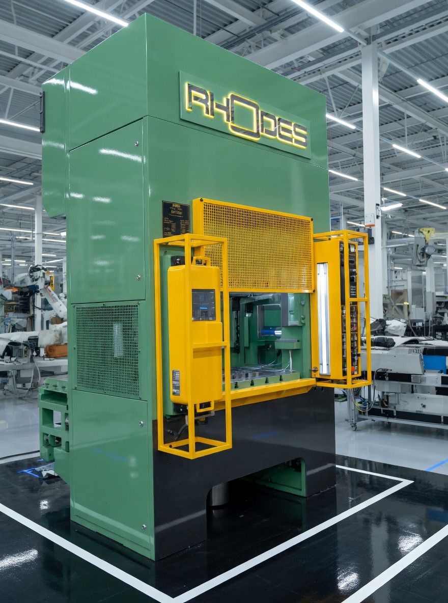 The Rhodes Interform's extensive HFP Four Pillar press range incorporates either a mechanical or hydraulic electrically interlocked restraint system to prevent the slide from falling due to gravity. The four pillar press range is available in capacities from 25 to 160 tonnes.
